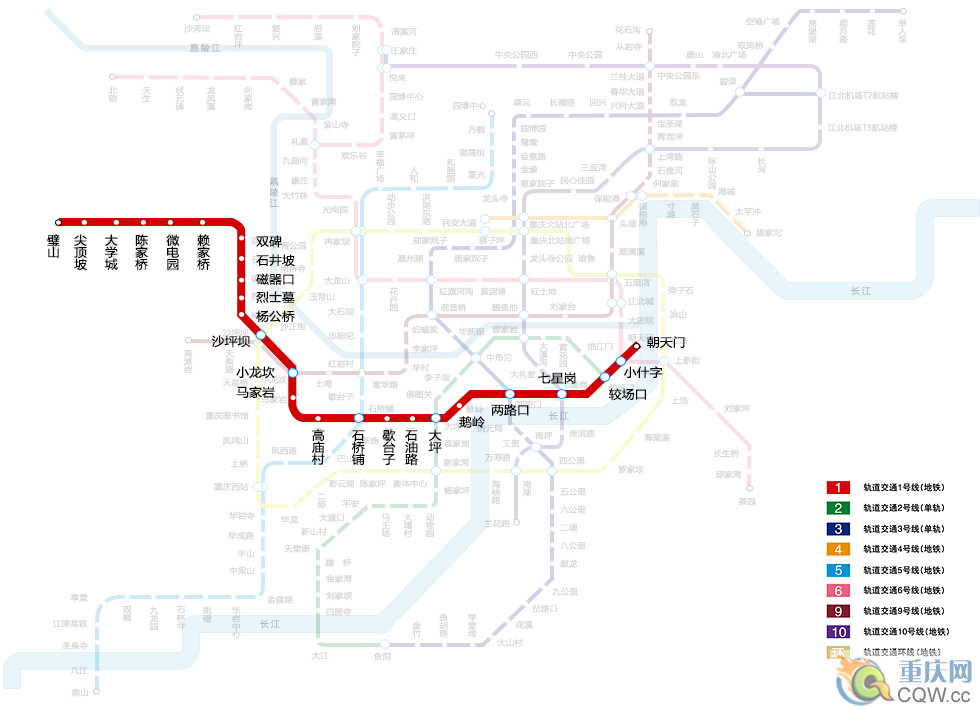 重慶1號線運營時刻表地圖