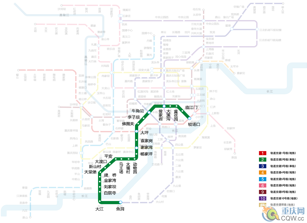 重慶2號(hào)線運(yùn)營(yíng)時(shí)刻表,2號(hào)線運(yùn)營(yíng)線網(wǎng)圖