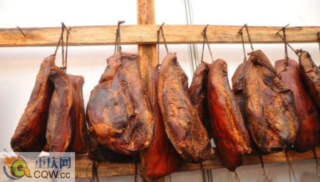冬至“入九”后,是鄉間農家宰豬熏肉的季節。按部位將豬肉分割成二十多塊,用鹽腌制一至兩日,再煙熏一月左右,便制成煙熏臘肉。熏制過的臘肉,帶有獨特的香味,煮熟后直接食用或者是切薄片用來搭配蒜苗、青椒等炒制都是風味獨特。