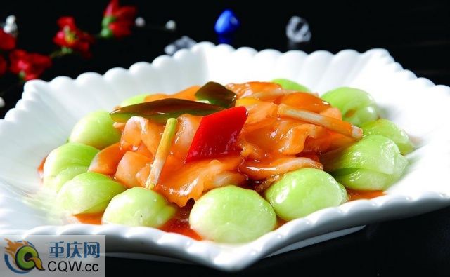 “紅燒魚唇”是四川重慶的一款名菜。此菜系用于鱷魚唇,幾經氽煮,發好之后,再配以冬菇、火腿、豬肘、菜心紅湯等,用文火慢成菜。汁色紅亮,香味醇濃,柔軟肥糯,咸鮮可口,是冬春時令佳肴,為川菜宴席傳統名品。