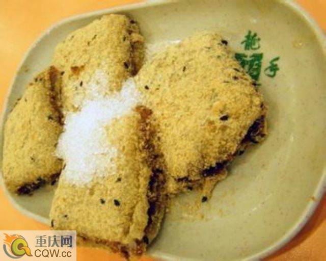 涼糍粑產(chǎn)于重慶,制法分三步:1、把糯米淘洗干凈,用溫水泡二三個(gè)小時(shí),控干水后裝入飯甑內(nèi),用旺火蒸熟,然后,將熟米飯放入石礁窩內(nèi)。舂茸成糍粑,用熱的帕子搭蓋。2、把芝麻粉、蜜桂花、白糖、食用桃紅色素拌勻,制成芝麻糖。再把黃豆炒熟,磨成粉待用。3、糍粑放在案板上晾涼后,分成兩半,一半放在撒有黃豆粉的案板上,攤開(kāi)壓平成片,將洗沙均勻地抹上。將另一半糍粑成大小、厚薄差不多的片,蓋在其上,再把芝麻糖撒在面上,切成塊就可以了。其特點(diǎn)為色香味俱佳,糯軟醇甜,入口涼爽,沁人心脾。