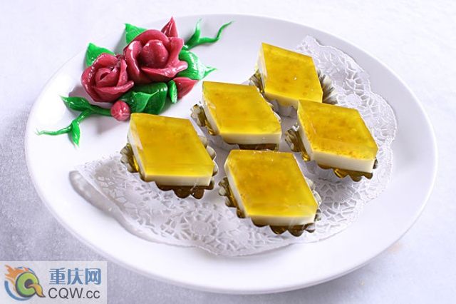 桂花糕:永川傳統美食,迄今已有百余年歷史。本品質味香甜細嫩,別具桂花色味,謂之萬白叢中一點黃。1984年評為重慶市名特小吃。