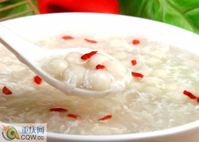 這是用甜酒釀與糯米面為原料做成的川味小吃,雖然名為湯圓,其實(shí)是沒有餡的糯米疙瘩,吃起來香甜滑潤(rùn),而且有降火、潤(rùn)肺之功效。這也是四川、重慶人每逢春節(jié)不可或缺的菜肴,常常是除夕夜一家人看電視或者打麻將,玩到一半時(shí)再吃上一碗,那種熱乎乎的感覺特別溫馨。