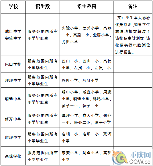 附件:1.城口縣2019年各初中學校招生范圍
