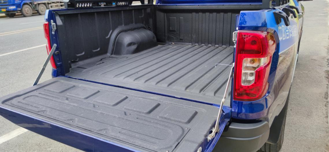 關于車尾貨箱部分,長安凱程F70也有著許多實用性的設計,欄板高度500mm,貨箱尺寸1600×1595mm。車尾設置的踏板方便用戶上下貨箱進行擺放物品,貨箱左右各有3處掛鉤,在裝載大件物品可以用來捆扎繩子固定,這些錨點足夠粗壯日常使用起來也十分方便。除此之外,長安凱程F70貨箱標配了貨箱寶保護涂層,能夠防劃耐腐蝕。