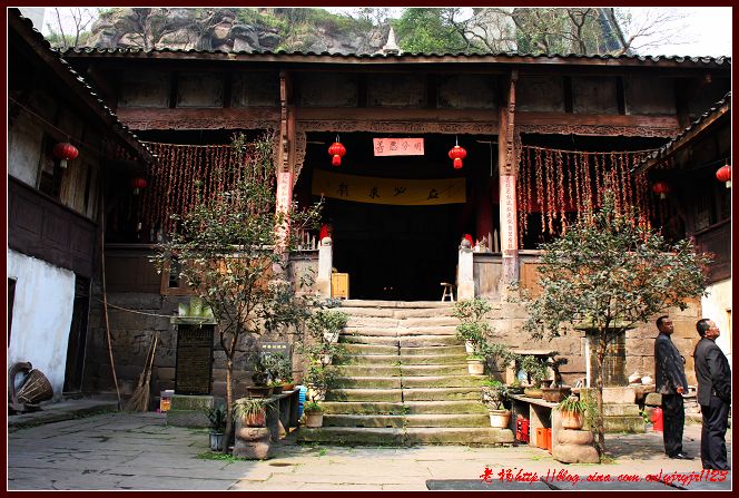 東溪的交通是十分方便的。明朝成化年間的川黔青石板古道穿場而過,現在的210國道和渝黔高速公路縱貫全境。于是,一座古老的王爺廟就落在了渝黔高速公路的高架橋下。王爺廟背靠210國道,頭頂渝黔高速公路,腳抵川黔石板古道,面臨東溪河,依山傍水。廟里已經沒有什么菩薩可敬了,但是,廟還是保護得挺好的。一打聽,原來鎮上為保護王爺廟就將廟租賃給了一位餐飲老板。于是,年輕的老板在廟里開起了飯館和茶館。正好也過午飯時間,我們也干脆在廟里點了四樣菜。一會兒功夫,菜上來了,其口味也挺好的。飯后,我們圍著寺廟轉了轉,發現王爺廟建在河邊,門前有兩棵黃桷樹。飯館老板說,那黃桷樹的年代與王爺廟一樣長,建廟時就栽下了兩棵黃桷樹。當時,建廟人為保護黃桷樹,防止被水沖走,用條石砌成堡坎將黃桷樹護在中央。然而,今天,我們看見的已經不是石護樹了,而是黃桷樹的根把條石緊緊地摟在了懷里,護在了身下。我感慨,樹都知道報恩,何況人呢!