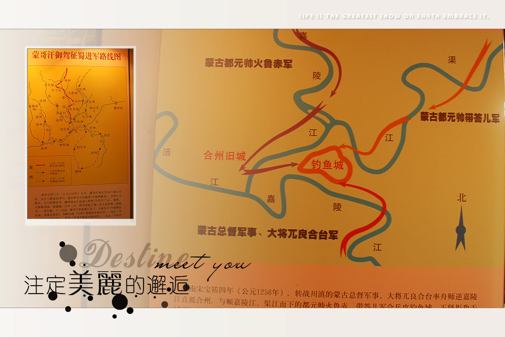 如果說這樣的改變有歷史的偶然,那釣魚城以一個彈丸之地固守抗戰了36年直到南宋滅亡,就是戰爭史上的一個奇跡了。此番前去古戰場,翻開那段塵封的歷史,才發現有那么多的人和事,有值得尊敬的,有被人唾棄的,還有至今功過是非說不清道不明的……讓我細細講來吧: