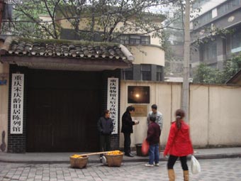 20071121。順著中山三路,向往南區路相背的方向去,那是宋慶齡在重慶的故居,抗戰的最后幾年,宋慶齡居住于此,組建保衛中國同盟委員會(好像除了汪精衛,各黨各派都進駐了重慶,中國人有時也挺抱團的)。臨著中山三路有一個招牌,故居退在巷里,正對著巷口,大門已閉,停著一個賣桔子的擔子和一個賣豆花的擔子。巷口還有一個大而圓得夸張的水井蓋,上面還裂著放射狀的縫,像切開的大餅。