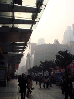 20071123。照胖哥的指示向東過街去尋若瑟堂,發現沒有路口,好容易找到一個地下通道,上來已是若瑟堂東邊100的新華日報舊址了。地圖上的若瑟堂似乎是退在巷子里,沒走幾步,在兩棟樓的夾縫中,冷不丁看到比大路矮十幾個臺階的黑黑的磚砌門墻上黃底碎瓷拼就的“若瑟堂”三字,還有點不大相信。