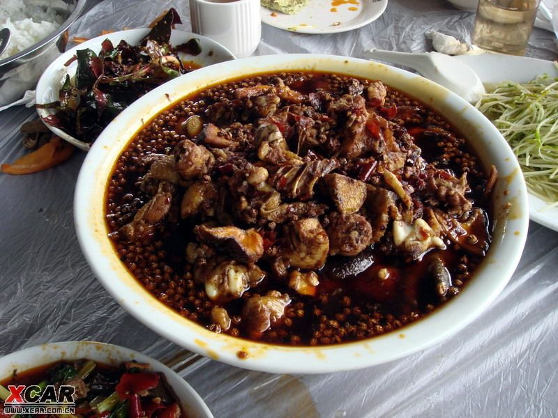根據線路安排做長江索道前往南岸 來回4元很方便(住的地方離嘉陵江和長江索道都非常近 )一路看高空景色過去 怎么長江的水是黃的 記得去年底在宜昌看到的長江還是綠色來 奇怪 到了南岸打了私人“突突”車上山 以為很近 誰知道一路盤山公路上去開了也老半天 到了泉水雞一條街 看看這里好像外地人不太來吃哦 中午時分全市當地車子開過來 全當農家樂 吃完一番桌子就麻將上了。我們兩個人也挑了個4斤的雞 居然除了雞毛 雞腚全用到菜里了 又點了2個素菜 折耳根 豌豆苗 一共140元 反正看圖那么大一碗泉水雞 我們吃完還跟沒動一樣 實在太多了。