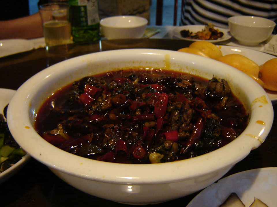 出發(fā)前對(duì)重慶的飲食稍微了解了下,贊不絕口的泉水雞真是沒有辜負(fù)了大家的推薦。至今仍然回味那散不盡的香、辣、麻和那如牛蛙口感的雞肉。被麻倒之后,品嘗了枇杷這一佳果後,一伙人又將第二盆雞肉下肚。一伙人,同在上海居住卻因此次旅行而結(jié)識(shí)的人兒,把著酒杯就著泉水雞和晚間的習(xí)習(xí)涼風(fēng),歡談著。緣,很奇妙!