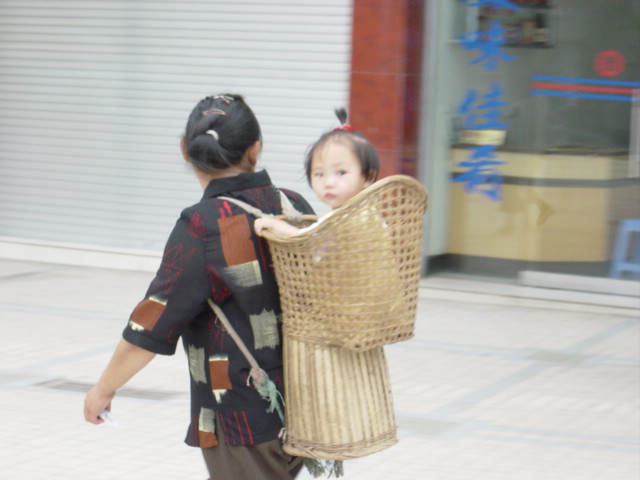 最令人稱奇是 男女老少 紛紛加人街頭的扁擔大軍或背婁大軍 任何物品統統放在肩膀上
