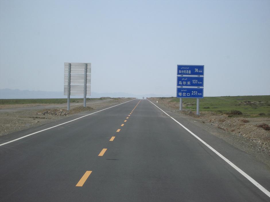 第二個是去奎屯的哈薩克夫婦,他們開一個普桑,車已經很破了,他們在加油站歇息,我就上去請他們載我們一程,他們同意了。我們在和什托洛蓋縣城吃午飯,我們請那大哥大姐吃抓飯。吃了午飯一耀發信息來說你們已經到魔鬼城的門口了。我們在43的高溫中繼續前進,熱浪一陣一陣沖過來,走了一陣大哥打瞌睡,我找他說話,大家語言不通也蠻費勁的!我有些擔心,好在大哥是走慣那路的人,他停歇下來,到路邊去拿礦泉水來淋著洗了把臉!