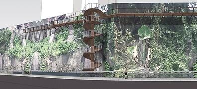 懸空棧道效果圖,通過旋轉樓梯與嘉濱路相連。