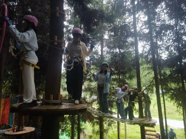 云中花都距離營地約15分鐘左右的路程,橫臥于七曜山主山脈,處在神秘的北緯30°上,屬于原始森林地區,高空玻璃橋、高空秋千、空中漂流項目,驚險又刺激!