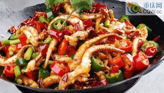 巴渝濕氣重、喜吃麻辣。黔江雞雜運用土家烹飪方式,雞雜的腥膻味重,熱菜油烹飪紅艷艷的泡辣椒、粉嫩嫩的泡蘿卜絲,輔以蔥、姜、蒜、花椒等調料烹制而成。口味脆嫩鮮香、麻辣兼備,色鮮味美,醇香可口,麻辣得人食欲大增。